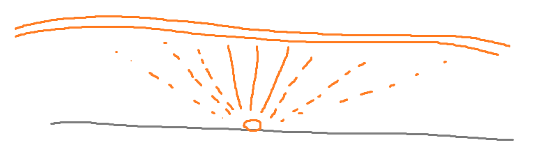 ある場所に来る光は、ケーブルの各点に関する重み付き積分になります。「全体が等しく光っているときの光量」は事前に求めたので、そこにいくらか割合が乗ってくる形になるはず。